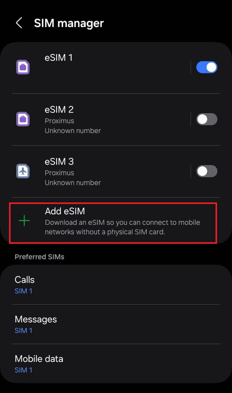 Install eSIM Manually